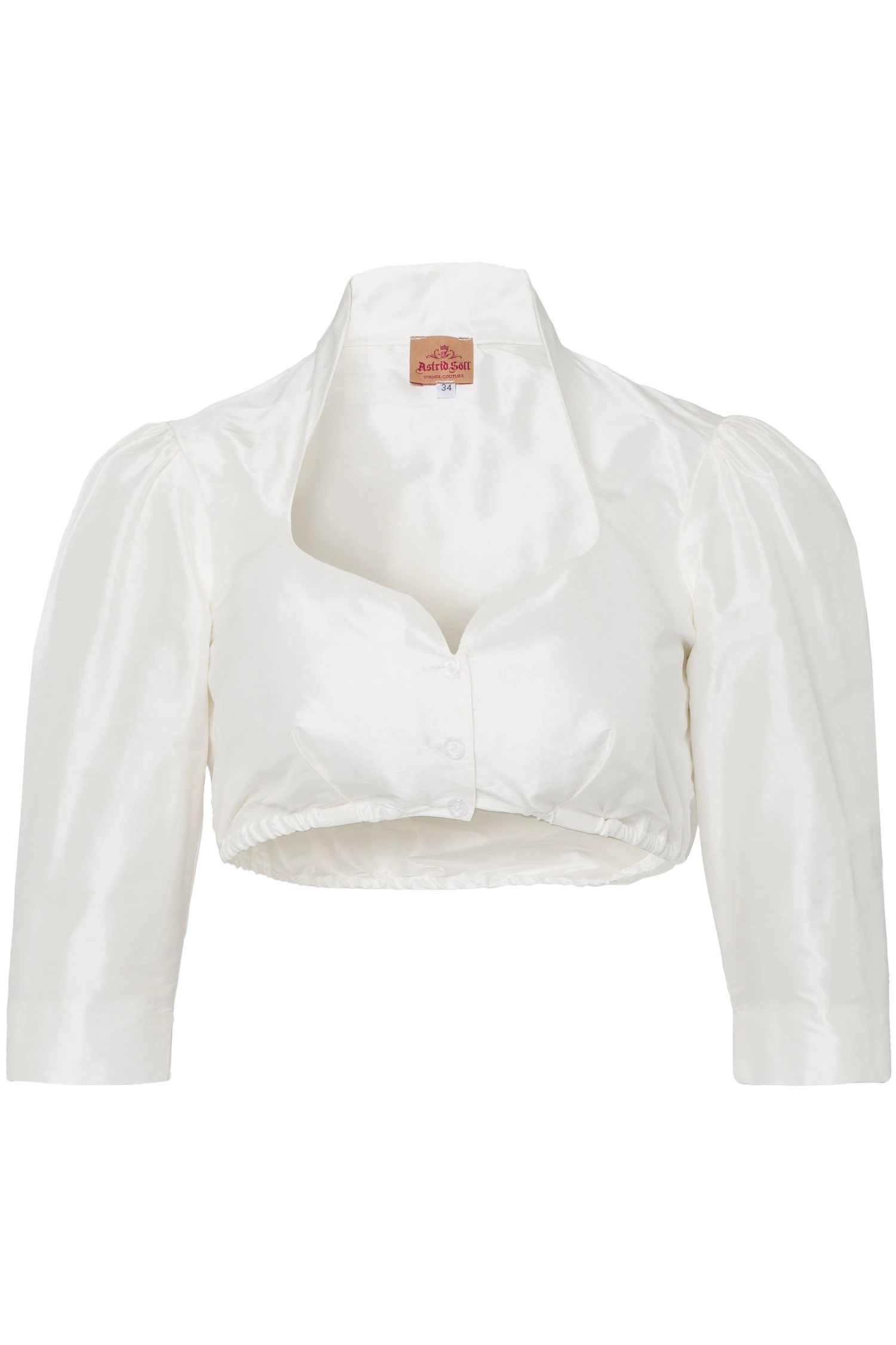 Die hochwertige Dirndlbluse überzeugt durch schlichte Eleganz.