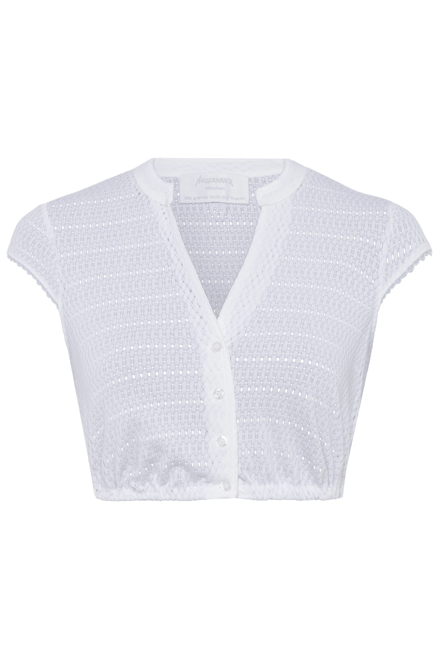 Klassische Dirndlbluse „Heidi“ aus unserer „Angermaier“-Kollektion in weiß mit V-Ausschnit und kurzen Ärmelchen.