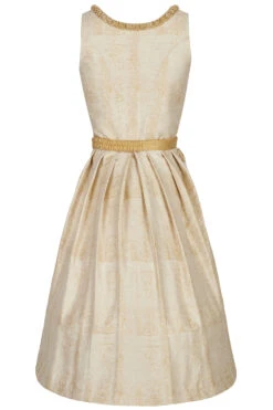 Das Dirndl hat einen hübschen Streublümchendruck der perfekt durch den Rankendruck auf der blauen Schürze ergänzt wird. Zum Dirndl gehört neben der Schürze ebenso die Bluse, welche am Leib aus komfortabler Baumwollfe und geraden Ärmelchen gefertigt ist.