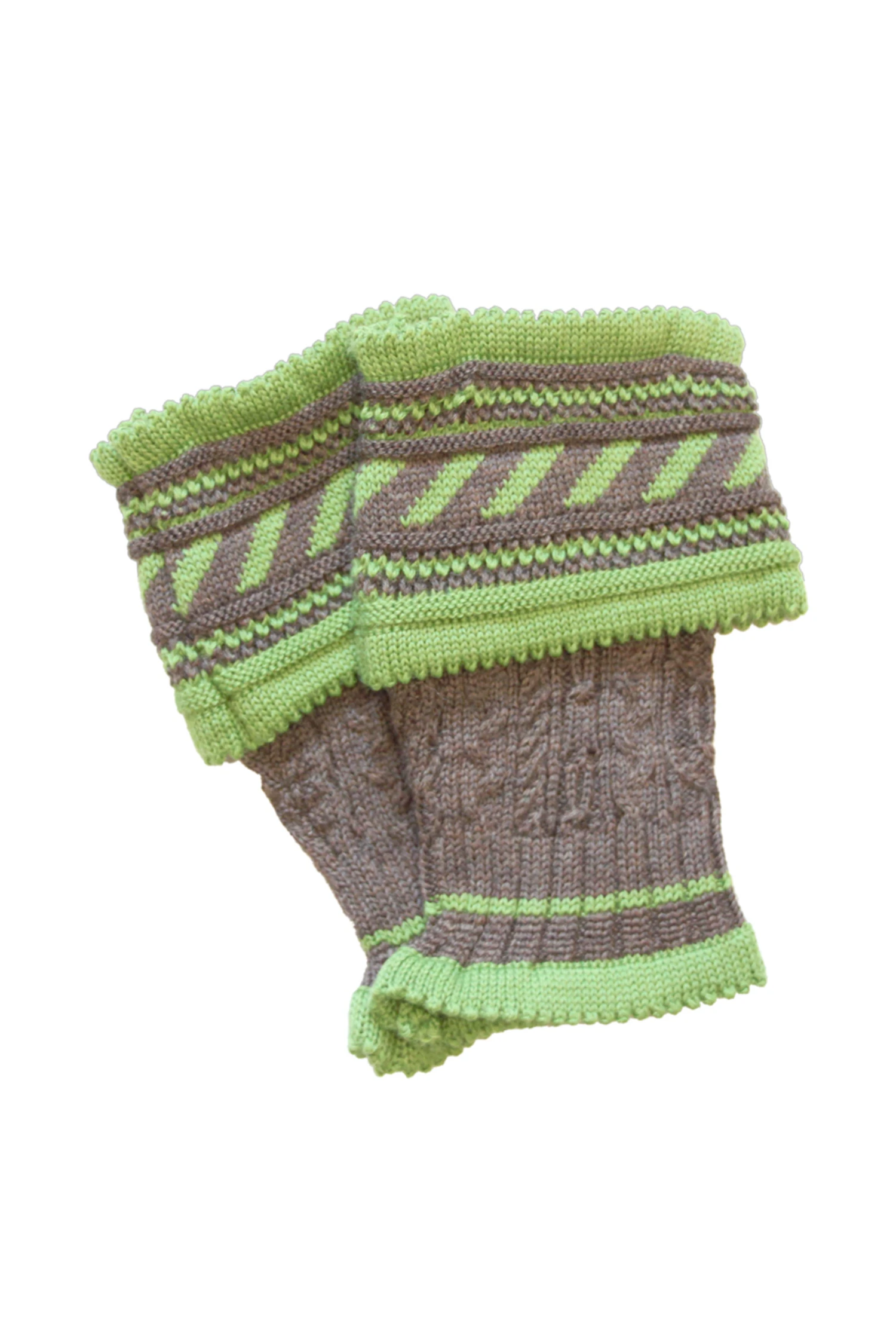 Tradition trifft Moderne. Klassische Loferl (Wadenwärmer) traditionell gestrickt in modernem Oliv mit warmem Braun kombiniert.