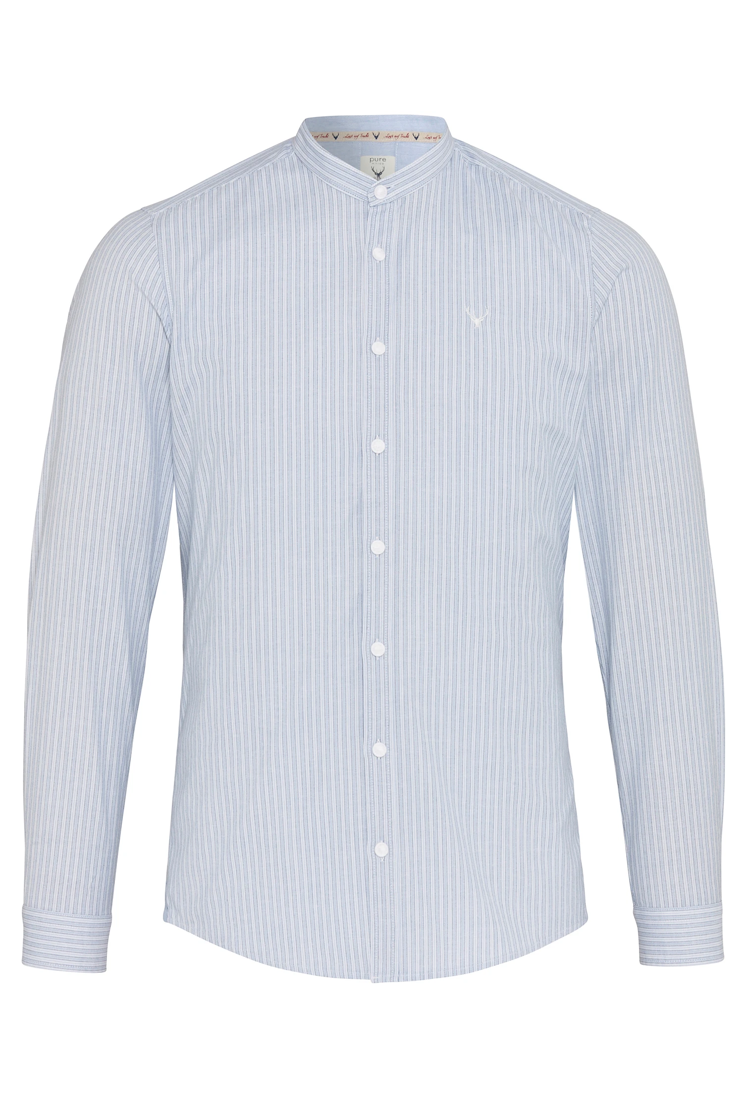 Klassisches Strehkragen Hemd in Hellblau mit Streifen. Hellblaues Stehkragen Hemd für Herren mit Streifendesign. Das Hemd ist in Slim-fit geschnitten.