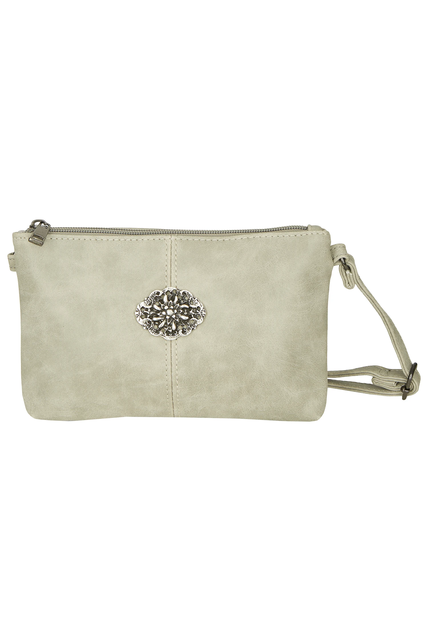 Die Tasche ist aus Glattleder-Optik gefertigt und hat ein ein ein großes und ein kleines Innenfach. Eine trachtige Spange ergänzt die Aufmachung der schlichten Tasche gekonnt.