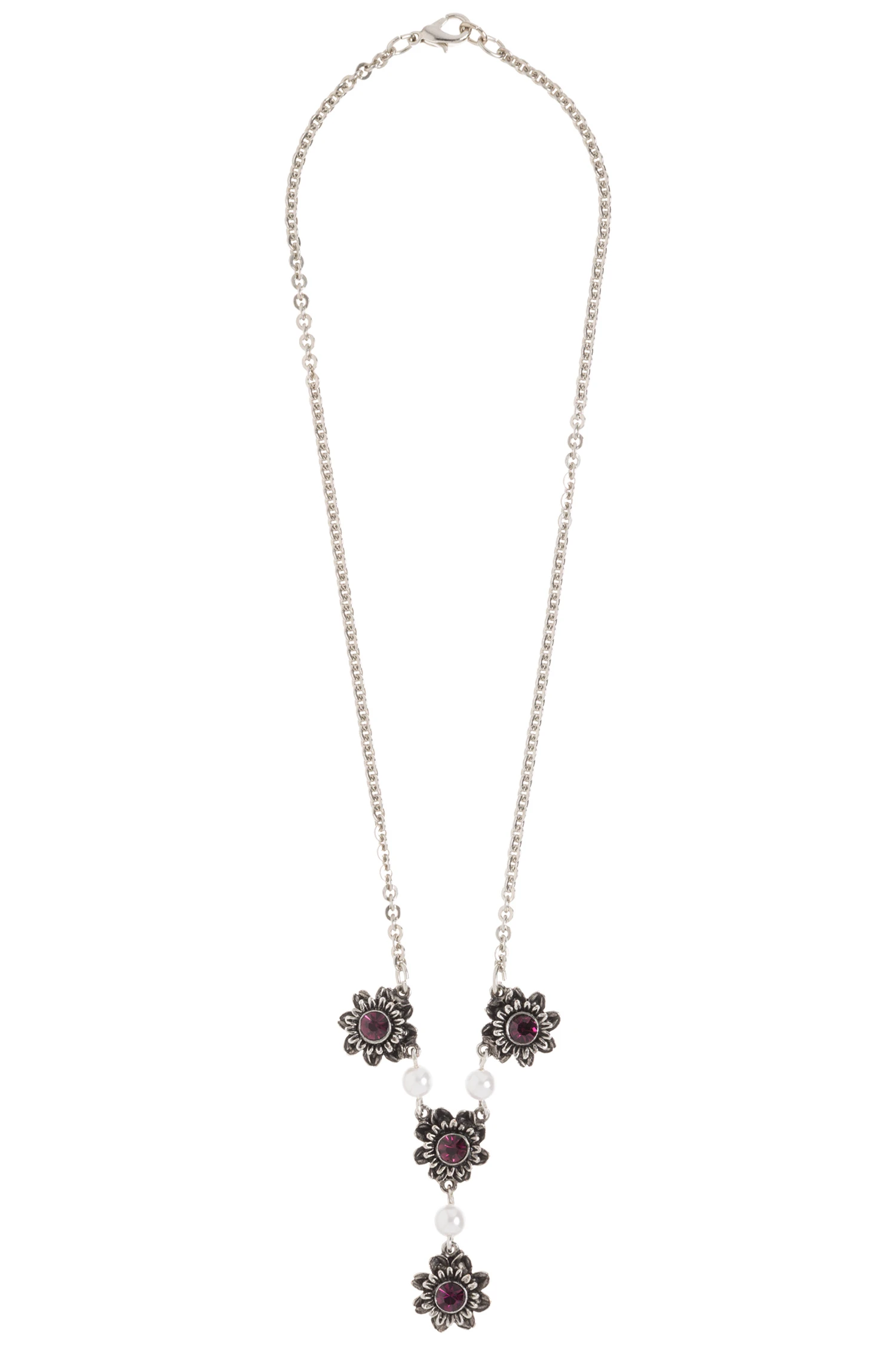Süßes Trachtencollier mit Perlen und schmuckstein-besetzten Blümchen-Anhängern.